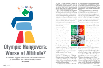 - For Kootenay Mountain Culture’s Winter 2009 “Competition” issue, I investigated what an Olympic hangover looks like at altitude.