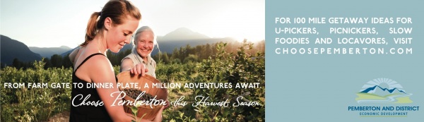 The project was entirely home-grown, and reveals Pemberton to be a small town with a big pool of talent, including Betsy Linnell Marketing as project manager, the Tourism Pemberton committee providing overall direction, Darryl Palmer editing, Gord Rutherford lending his voice, and a host of locals volunteering as models. Growers, makers, movers and shakers, all. The above and beyond contributions from everyone involved made the tagline “going the extra mile is always worth the effort” all the more true.