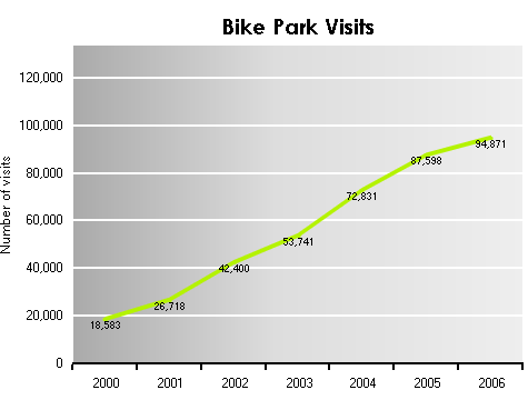 1999 Whistler Blackcomb take on operation of the bike park, opening the Whistler Mountain Bike Park with an expanded trail network. Approximately 10,000 visits are recorded.