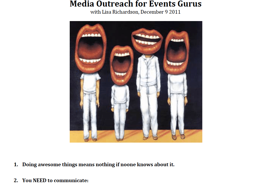 On Friday night, I ducked away early from a Christmas cocktail party, sucked my breath in at the cold, and hiked over to Muni Hall to present a seminar on media relations to the last ever class of interns to take LUNA’s remarkable Community Event Coordination training certificate program.