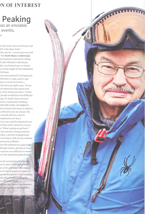 The credit union’s community-building ethos sits naturally with Deeks. He helped to establish Whistler’s Seniors Ski Team to address a gap in services offered by the ski school. The program, which initially left the school’s management nonplussed, now has a membership of over 200, and the organisers are fielding inquiries from other American resorts wanting to know “What’s going on up there?”