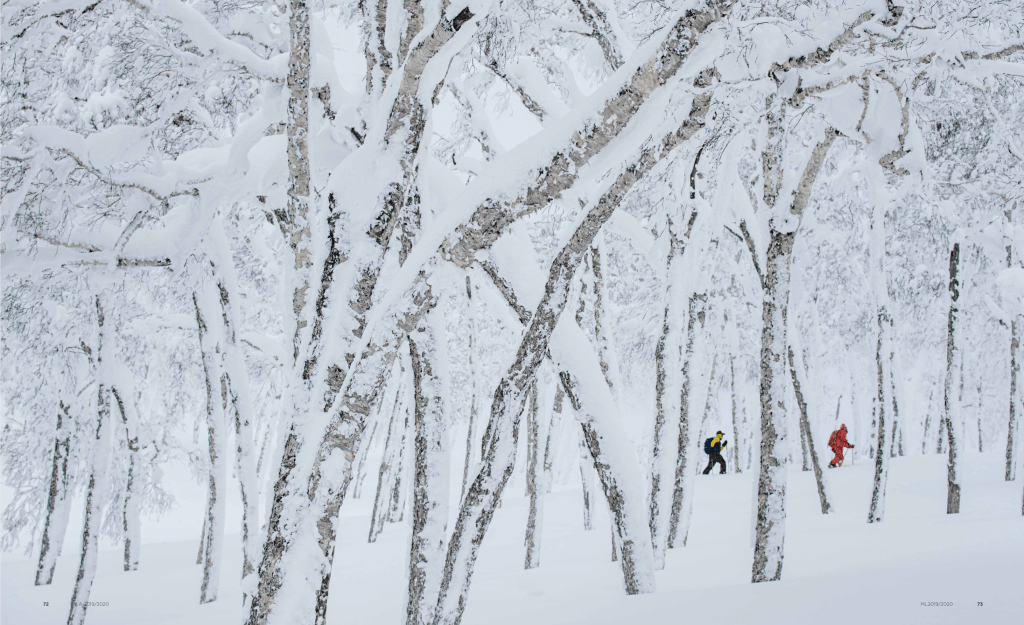 Yuki Miyazaki, who grew up in Japan but was educated in the United States, was the film’s onsite producer in Japan, where he now runs a boutique powder-guiding business on the northern island of Hokkaido. Used to chasing powder for clients, he found this wasn’t Manley and photographer Garrett Grove’s pre-eminent concern. “We travelled around central Hokkaido to meet different trees,” Miyazaki relates. “It felt more like we were going to visit somebody.”