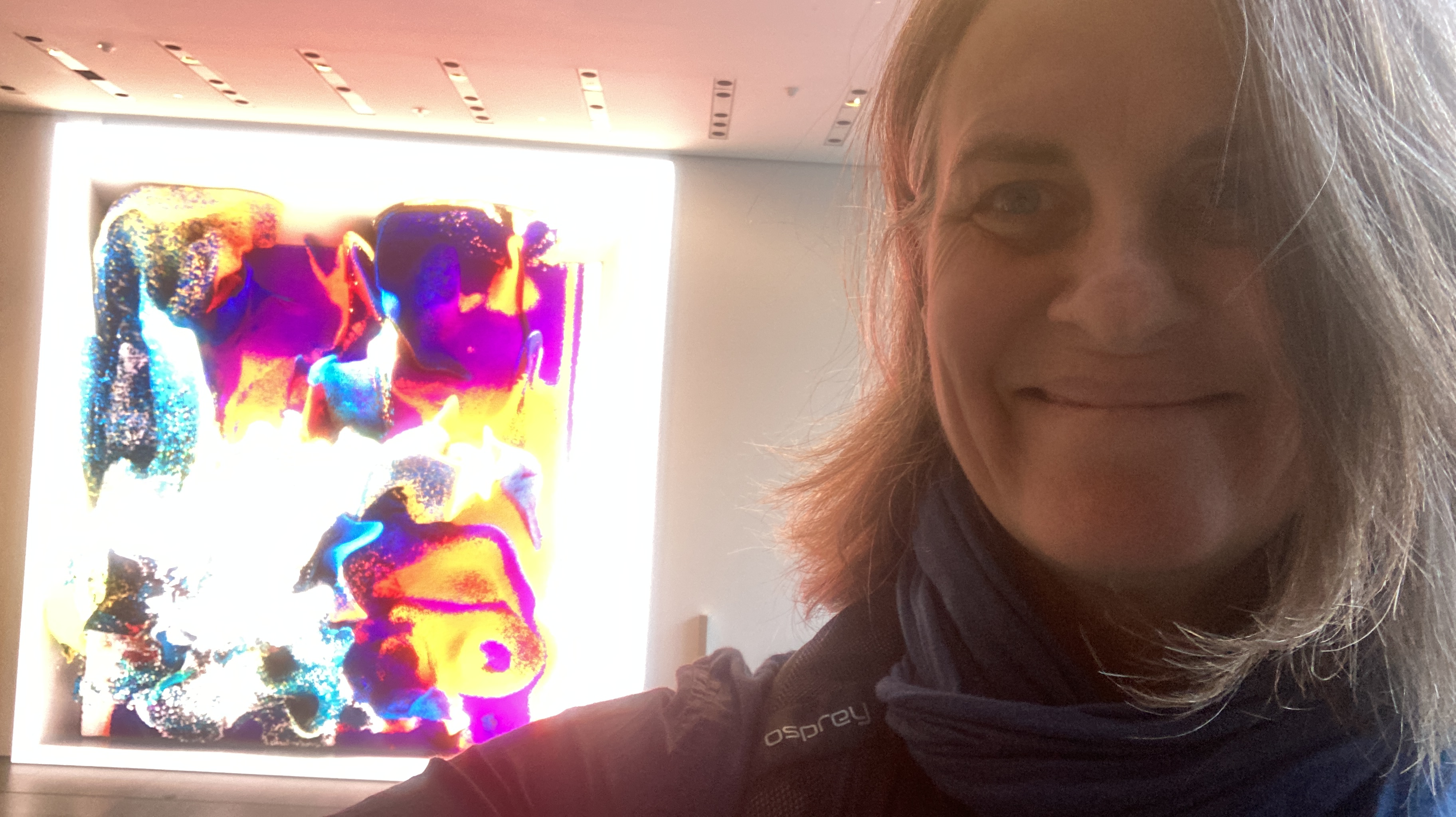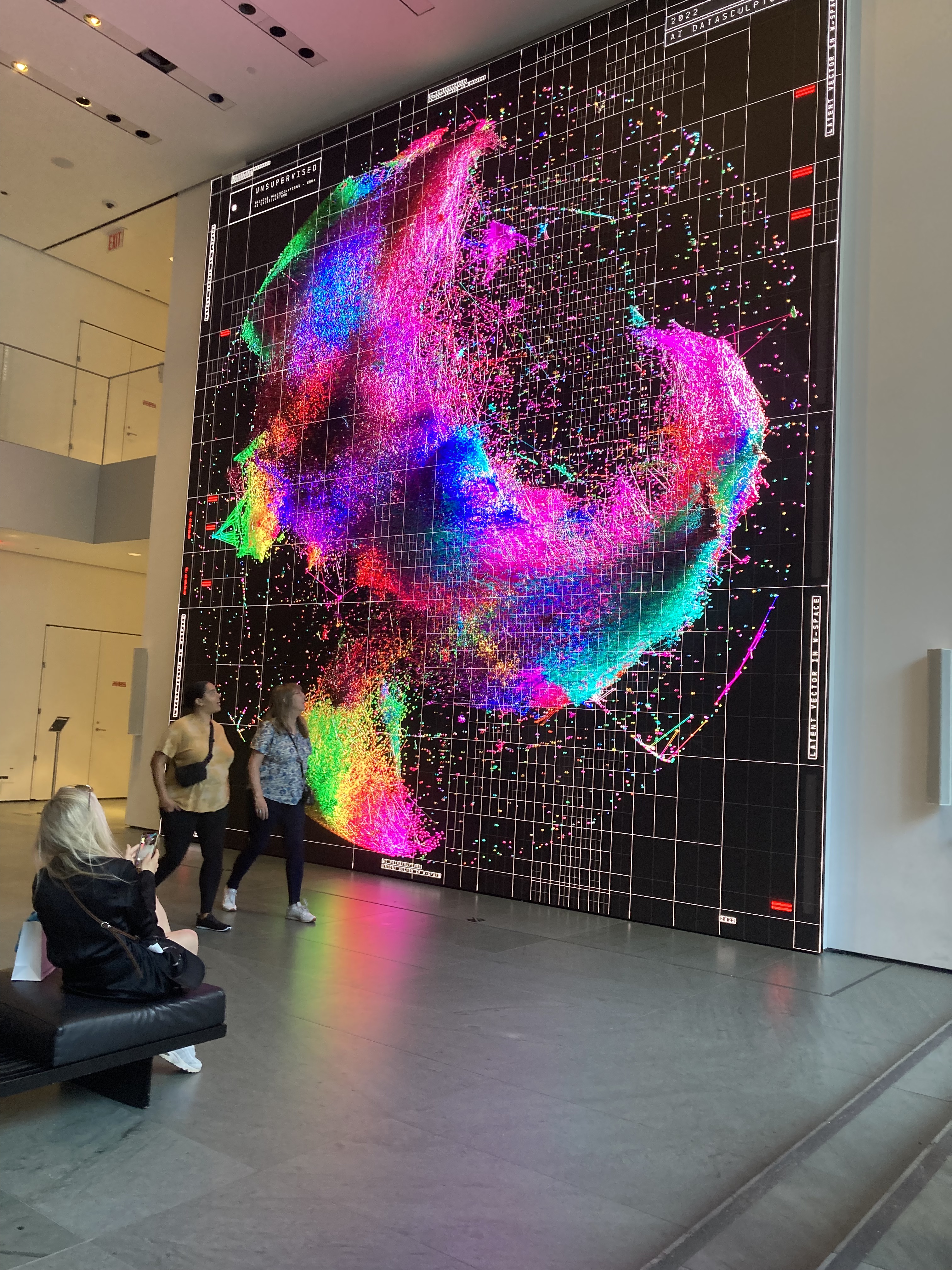 At MOMA, I do the thing with art that Oliver Burkeman made famous in his book 4000 Weeks: just sit in front of one piece of work, for an hour or more. It will transform you more than racing through the museum trying to check off every exhibit. Maybe it was cheating to pick a piece that’s alive. Refik Anadol’s installation, Unsupervised, is hailed as the first AI-generated art, an intelligent machine digesting, regurgitating, interpreting, the Museum’s 200 year-rich collection. The 24 by 24 foot screen dominates the lobby mesmerising crowds who are universally compelled to film pieces of the piece on their phones, crowding the cloud with replicants of this AI-generated phenomena where presumably future AI will spit out cultural offerings made up of these images of images of images.