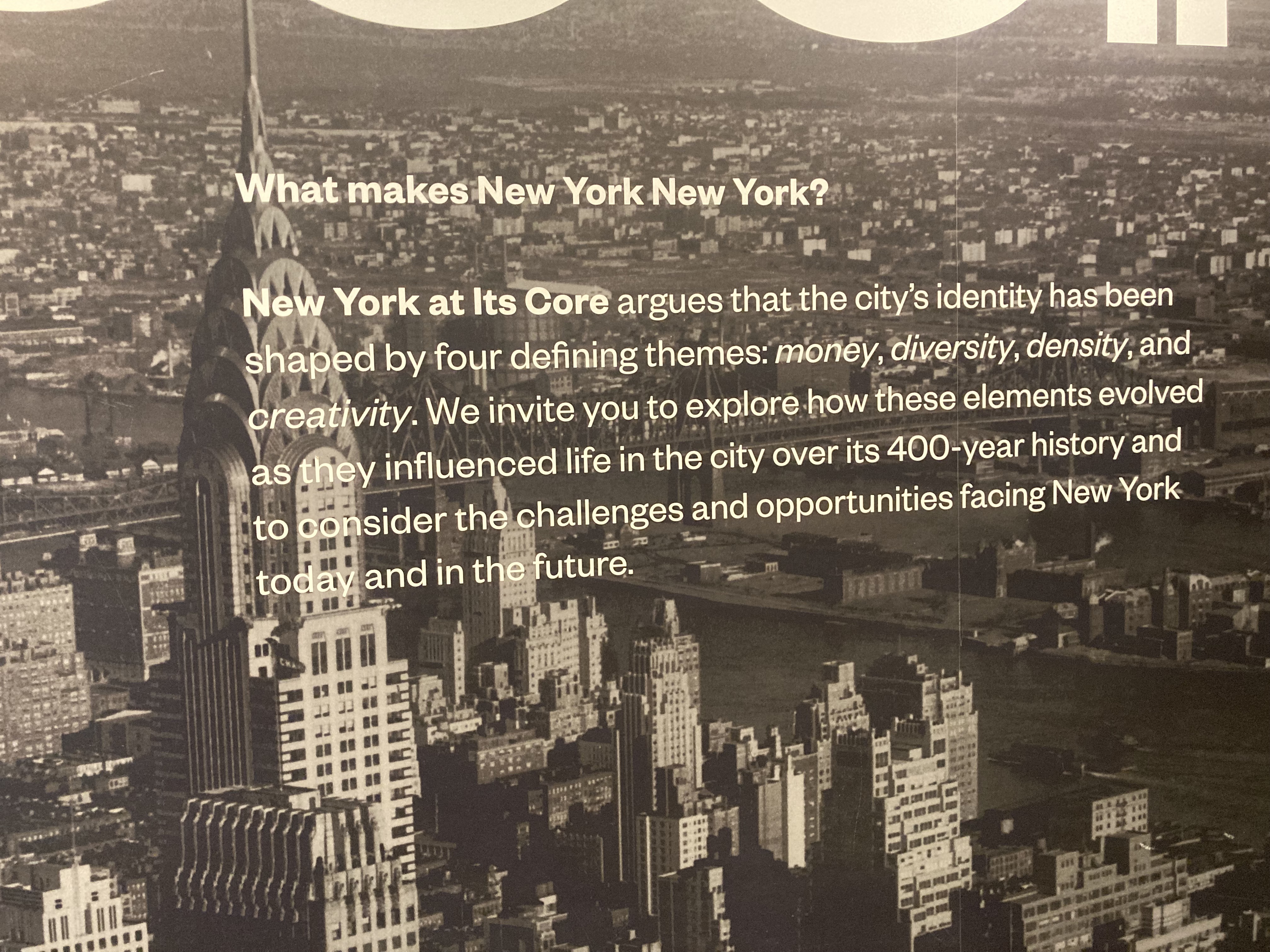 Before you can write, or live, a story, you need the setting. And New York has proven its reliability. The city’s iconography is unpacked and laid bare at the Museum of the City of New York, with a brilliant hyper-cut multiscreen edit of scenes from films, shot in New York, over the past hundred years. The low profile museum has to compete with the luminaries of MOMA and the Met, the Whitney, the Guggenheim, the Cooper Hewitt (Smithsonian Design Museum) or the 9/11 Memorial and Museum, but it’s worth a subway ride to Central Park North, East Harlem, for its explanation of the city’s perpetual allure: creativity, capital, density and diversity as the thrumming percussive bass lines set beneath every experience, ensuring your wavering little solo contribution is never thin, is always scored by the bigger soundtrack, of a story that keeps on looping, telling itself to itself.