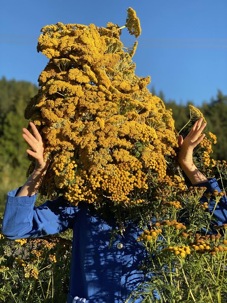 I do feel as if I was collaborating with the plants. Yes, I was pulling them/cutting them for the material but I also had no malice and really loved them all in a certain sense. Using my own body as the vehicle means that I had to consider each detail (the bloom and wilt time, the location, the outfit, the ability to walk/see, it all was different for each plant). The smell of each plant was different, the comfort (or lack of) in my body was radically different and having no face, but only ‘plant’ was actually quite soothing.