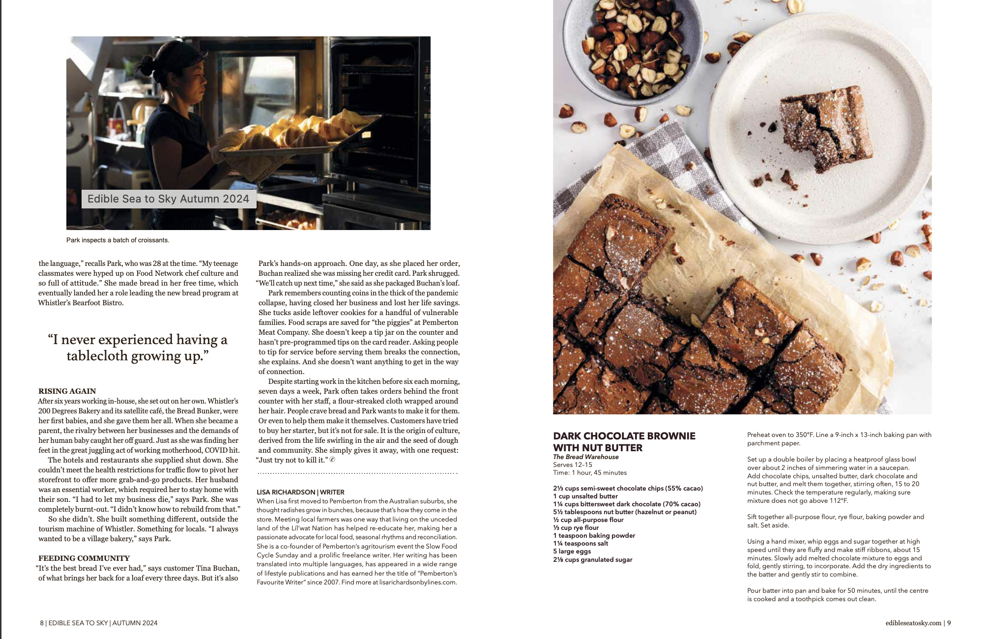 In Station Eleven, the apocalyptic post-pandemic novel by Canadian writer Emily St Mandel, one of the signs that the survivors were starting to rebuild community was when people started baking bread again. When Jen Park opened the Bread Warehouse in the Pemberton Industrial Park, it, too, signalled a rising sense of optimism. “I don’t feel like this is a food business, to be honest. The bakery is for people to connect.”