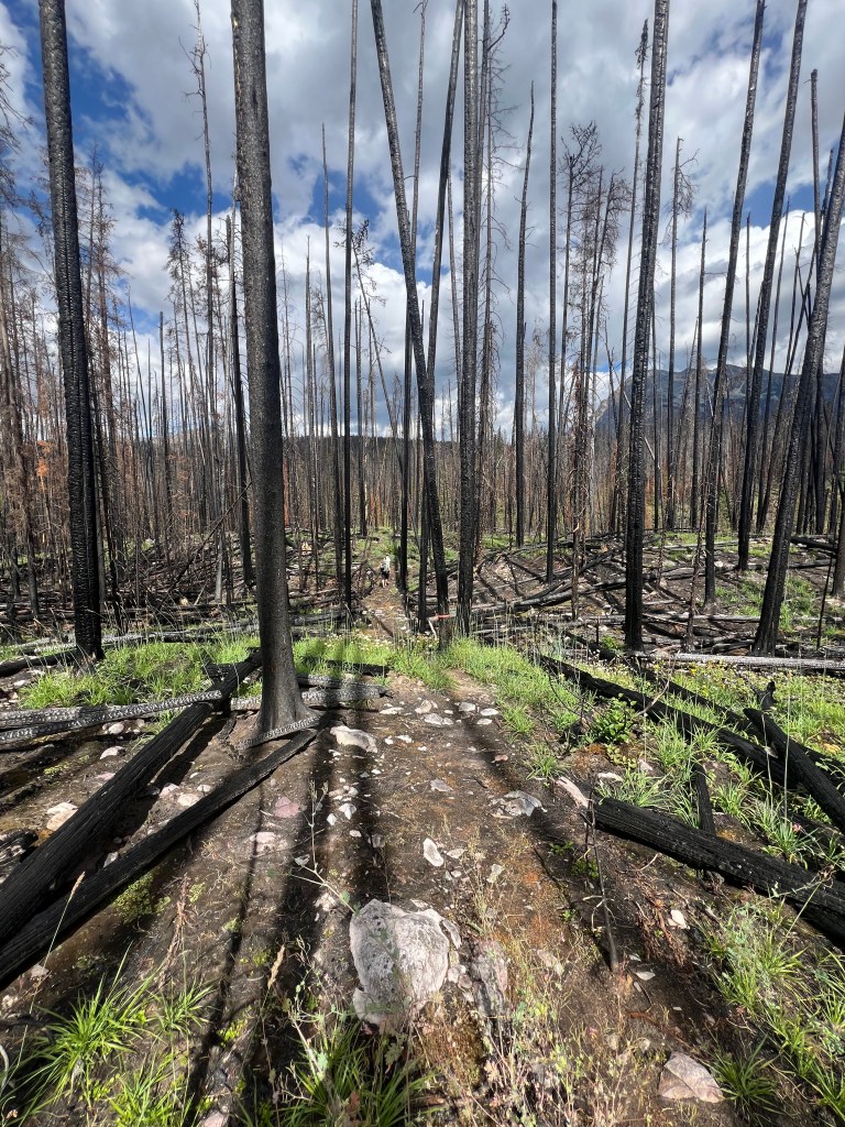 Jasper, a year after a wildfire burned a third of the town to the ground, felt cauterized, cut off from its own vitality, as though burns had staunched overt bloodshed but left gnarled scar tissue that was hard to look at. It’s impossible as an outsider to know how the fire actually affected the community, but the week we were there, staying in a campground full of culled trees, there was a one-year anniversary gathering downtown, and posters on the wall of the hostel saying effectively: Visitors, we want your business, but we don’t need your morbid curiosity. Please don’t ask locals if we lost something. We all lost something.